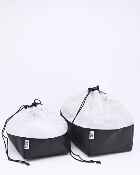 中のものがダイニーマによってうっすら見えるので、同じサイズのスタッフバッグを使っても開けずに視認することができます。
