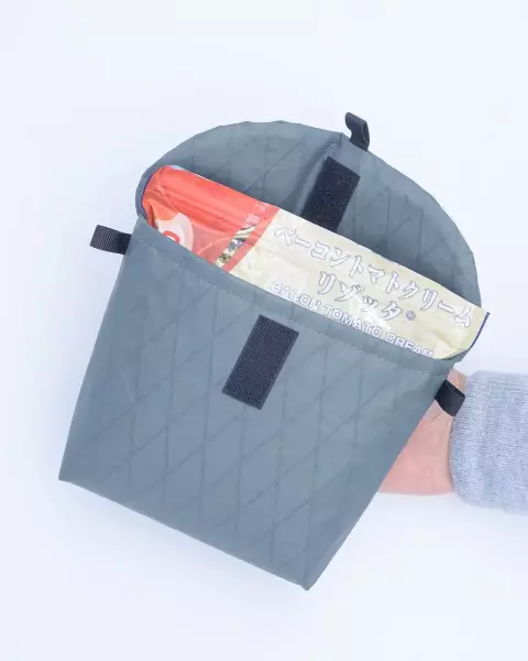 開けた時にはダイニーマの張りと、ボトム部分がX-PACなので、しっかりと自立して中のものが手で開かなくても見ることができます。