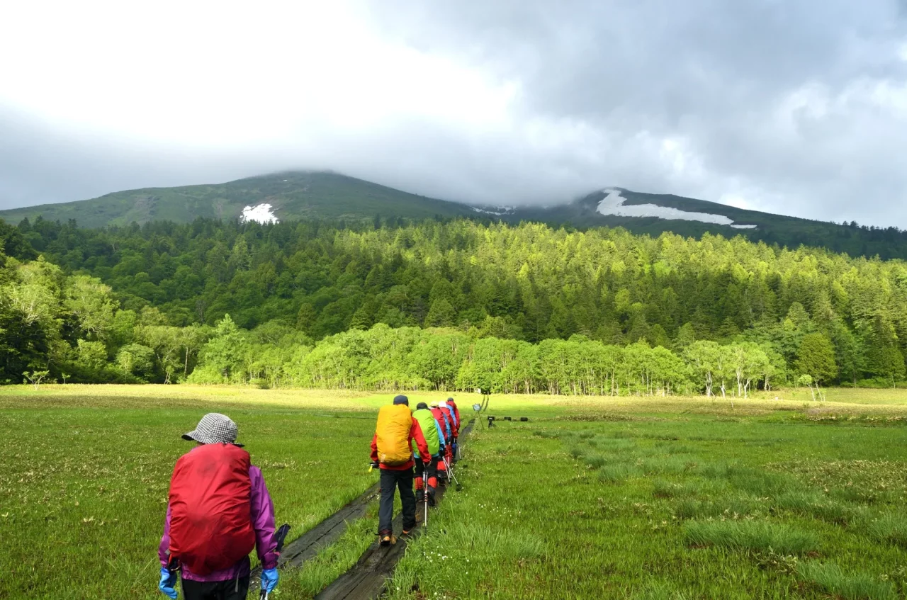 草木に付いた雨だけでなく、朝露も登山ウェアが濡れる原因の一つです。早い時間の登山では、朝露で植物がしっとり濡れています。濡れた笹やハイマツの茂みを進む際も、レインパンツが衣服が濡れるのを防ぎます。