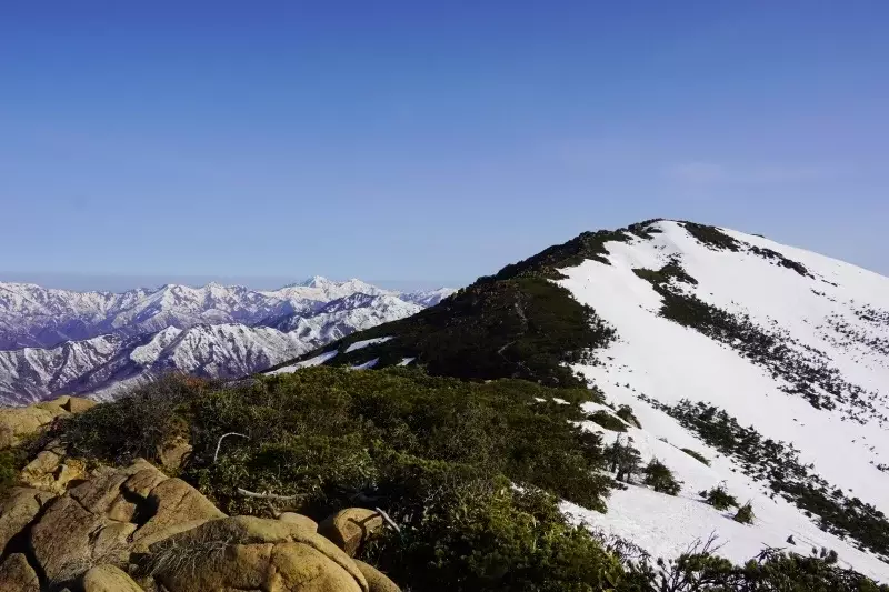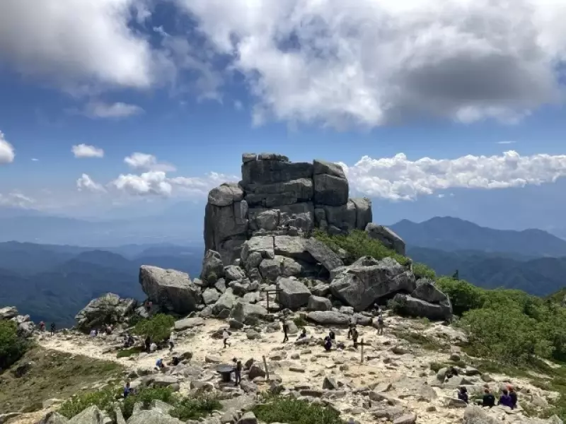 それゆえロッククライミングでも有名な山で、富士山や南アルプス、中央アルプスから北アルプスまでまさに絶景を楽しめる山です。真っ二つに割れた桃太郎岩、大ヤスリ岩、弘法岩や十一面岩などの奇岩が見られます。