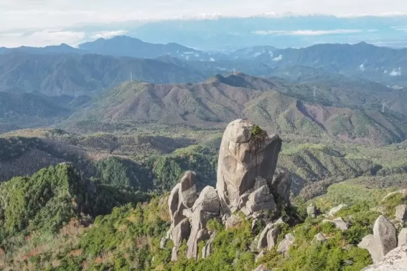 金峰山は奥秩父の主脈であり、古くから信仰の対象で蔵王権現を祀ります。山頂にそびえ、ひときわ目を引く「五丈岩」は、ヤマトタケルが岩の下に社殿を建てたと伝わる由緒ある巨岩。金峰山をご神体とする山麓の金櫻神社はパワースポットとして有名です。