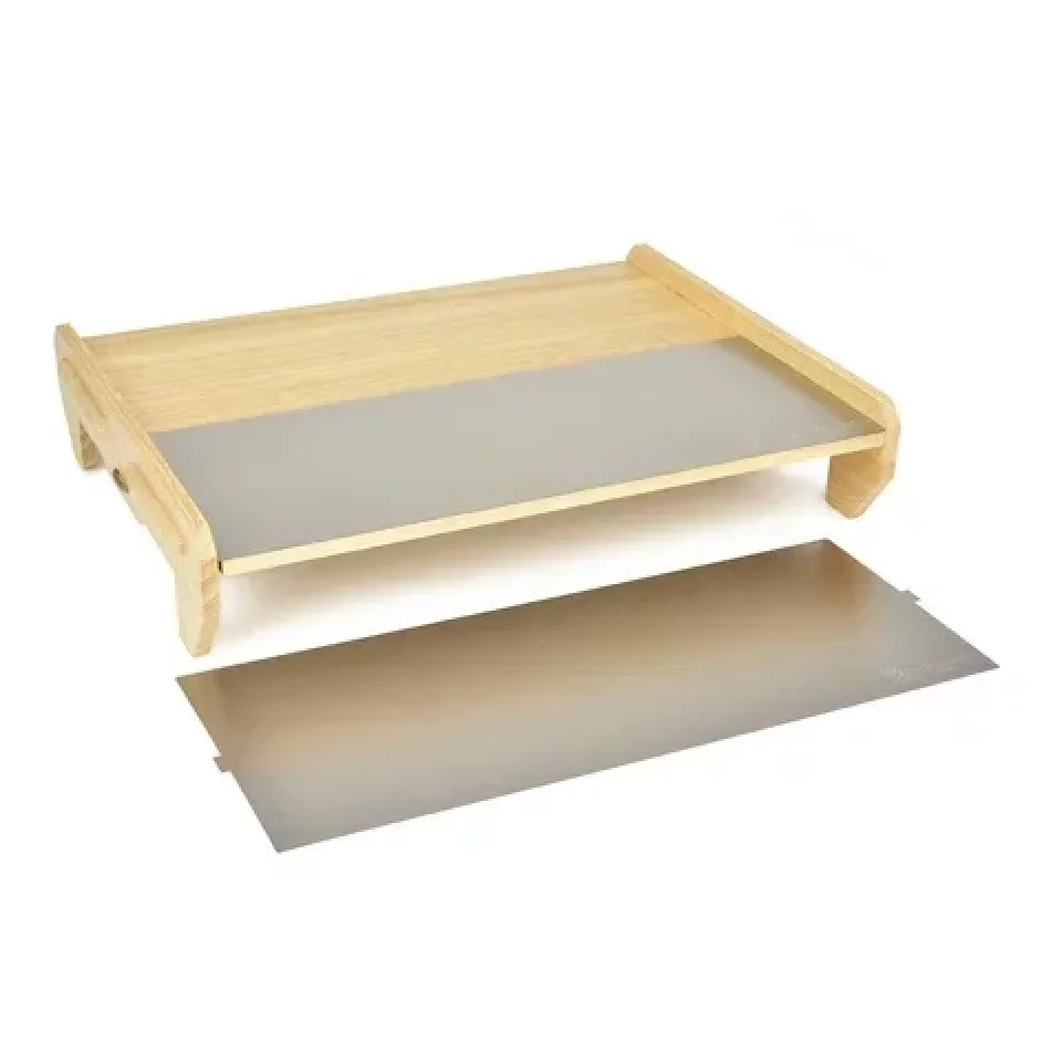 天板にはアルミを使用し、熱々のクッカーでも使用でき、本体は加熱による変形の心配がなく、脚を取り外せば1枚の板なので、メンテナンスも簡単です。