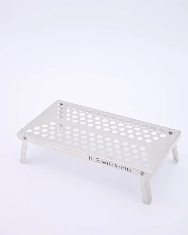 例えば石や木の根が多く凸凹した場所でも平面を確保できたり、雪山で使用すれば雪に触れずにバーナー・燃料缶をはじめとした火器を置くことができるというメリットがあります。