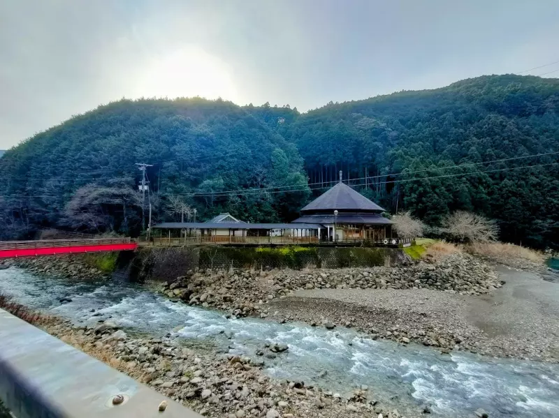 この後バスは「道の駅奥熊野」までむかう途中、【熊野三大温泉】と呼ばれる温泉地を