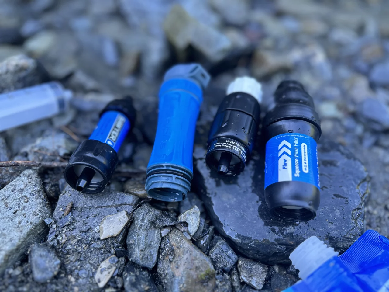 浄水器は、様々なモデルを使ってきましたが、フィルターが大きく水の出が良いこと、フィルター孔がソーヤーマイクロスクィーズフィルターを使っています。特に水場が少ない山、水場があったとしても出ているかよくわからない場合、長期縦走登山時にはもしもの時のために携行するようにしています。