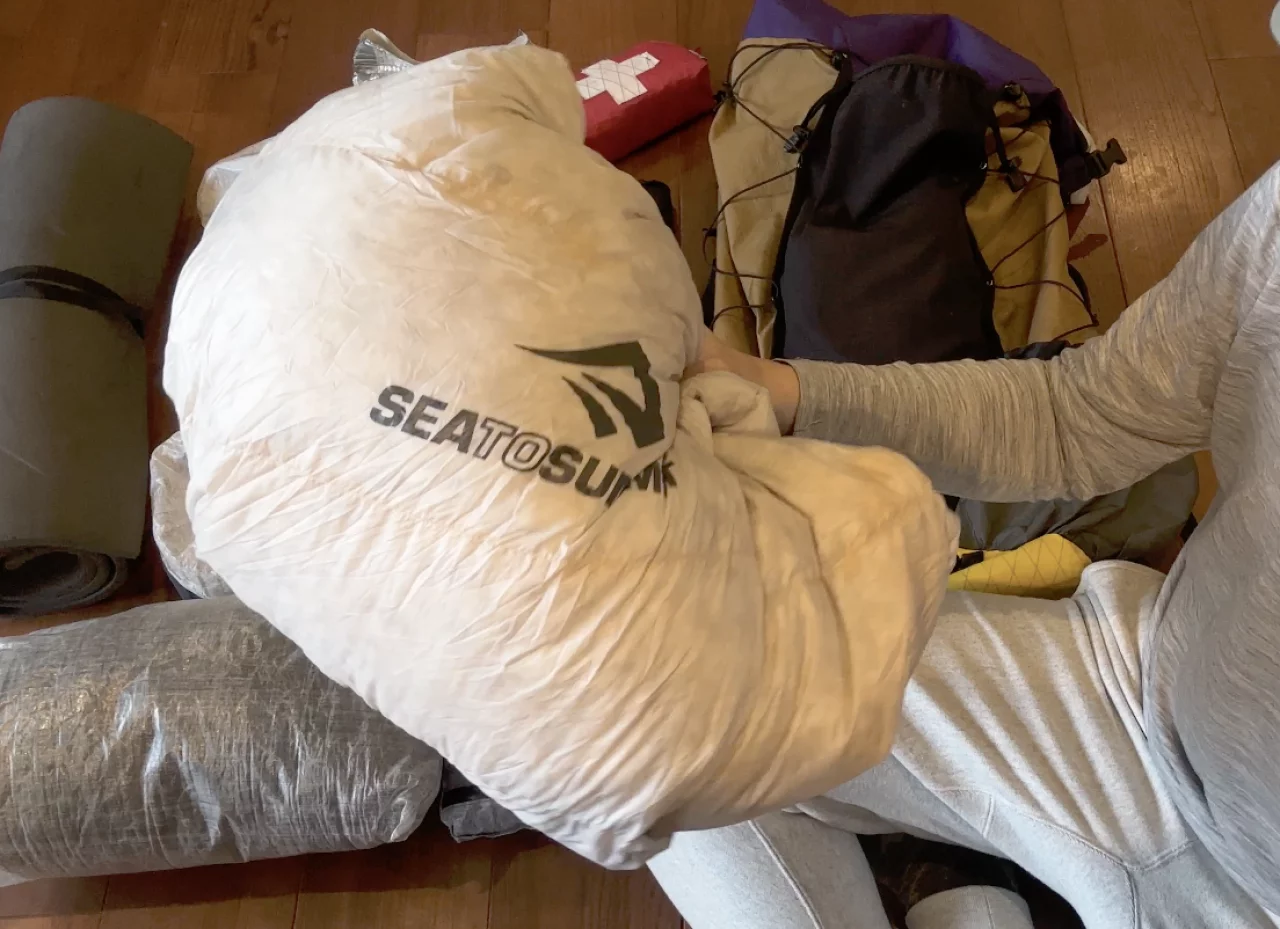 シュラフは撥水ダウンを使用した軽量で暖かく寝心地の良いシートゥサミットのSP1を愛用しています。スリーシーズンで最もよく使用するモデルで、低山で暑いことが想定できる場合はSP0、晩秋で標高が高い場所で、テント泊をするときはSP2というように使い分けています。