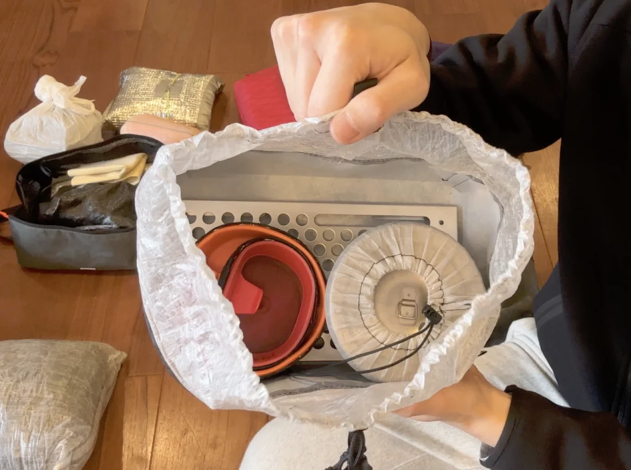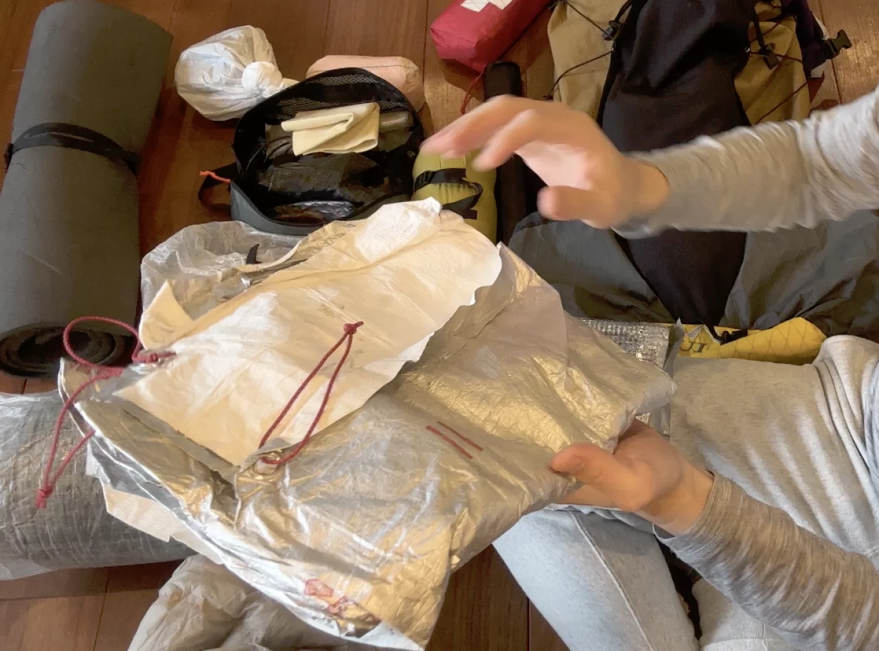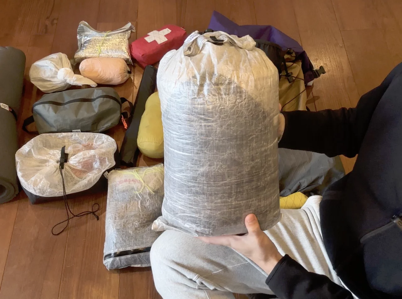 透湿・通気をしないダイニーマ素材なので匂いが気にならず、また着替えを雨などで濡らさずに持ち歩くことができる一石二鳥のアイテムです。