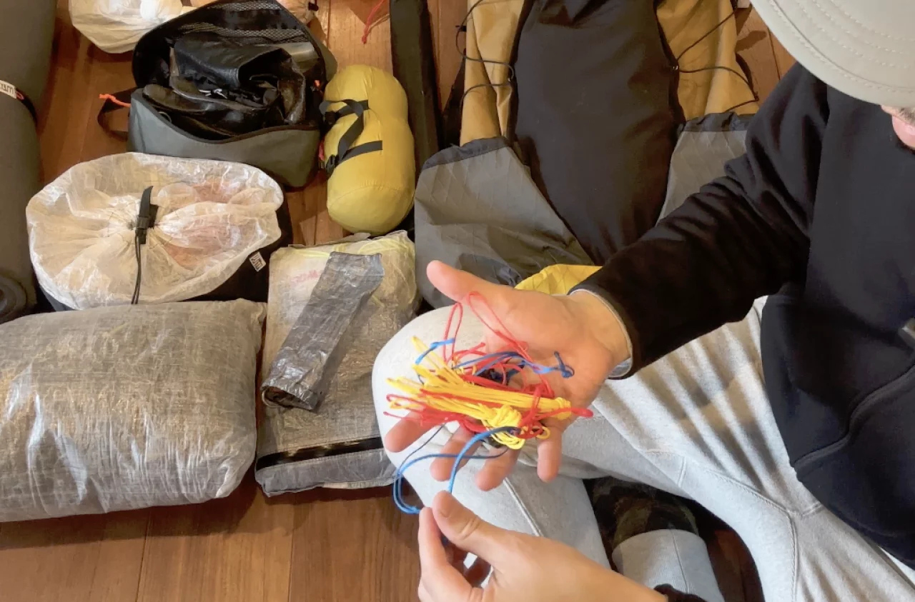 ペグ&ガイラインセットは様々なテントに取り付けることができるように、取り外しが容易で、さらにガイラインを固定するのが安易に行え、軽量のものをセレクトしています。このガイラインシステムは様々なアイテムを使った中で、最も使いやすさ、汎用性の高さ、そして軽いと言うことから、多くの人にも使ってもらいたいと思って山旅ショップで販売しています。