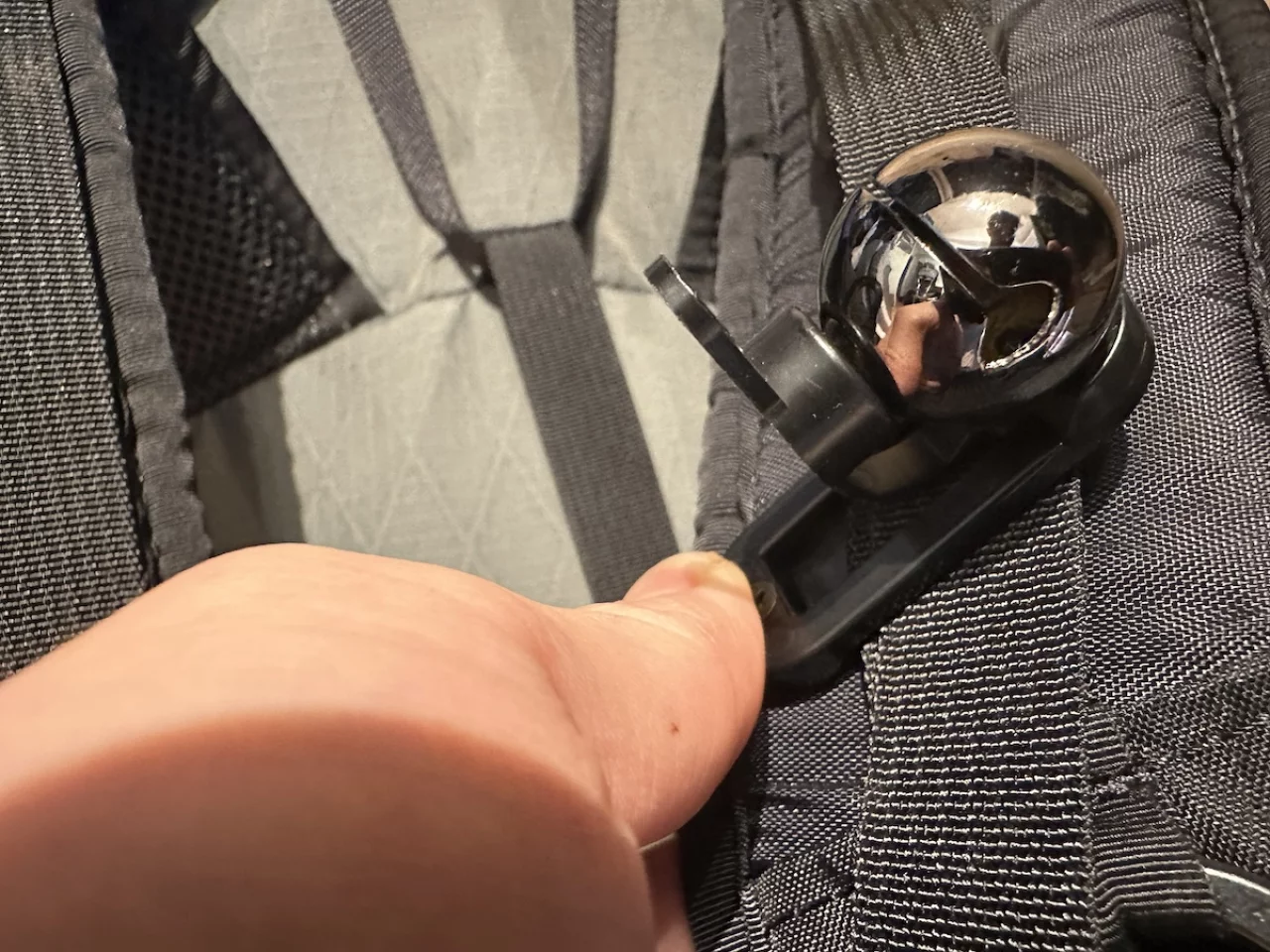熊鈴はトレイルランニングユーザ向けに開発された軽くて様々な場所に取り付けることができるモデルを使っています。 東京ベルのクリップベルと呼ばれるアイテムで 消音機能も付いています。
