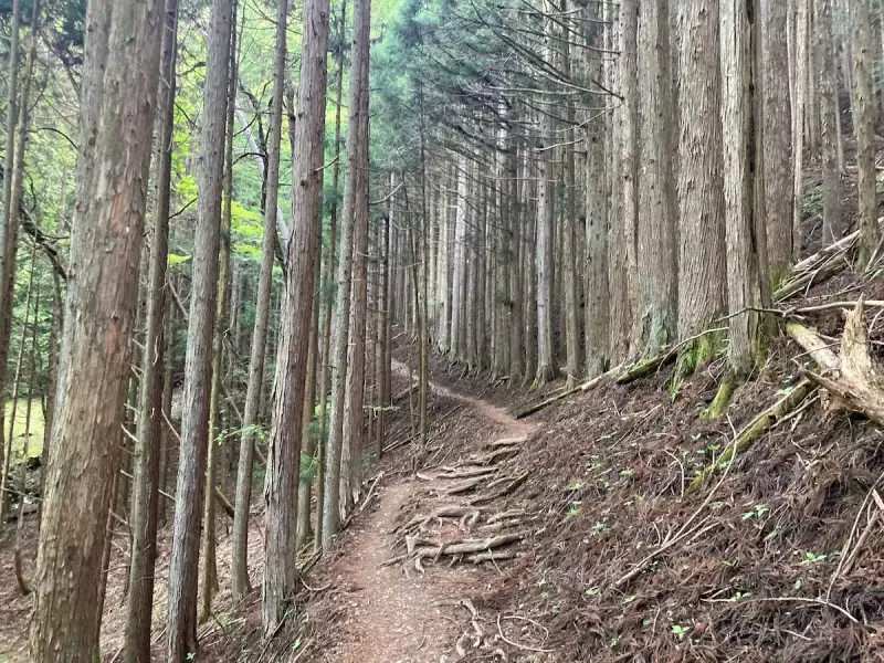 道満山へと続く道満尾根は緩やかな樹林帯の中を歩くので気持ちがいいのと、人がほとんどいないので自然を感じながら歩く事ができます。