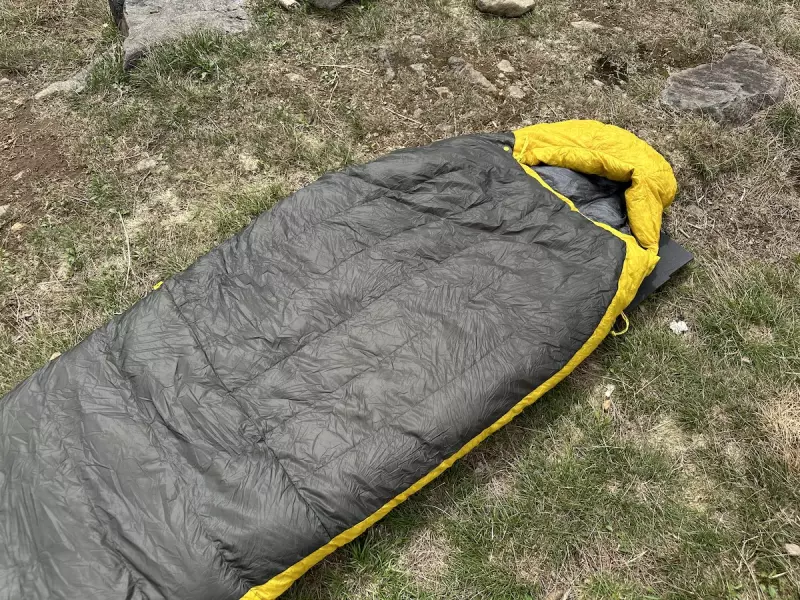 まずはじめに使用しているダウンは850+FPのウルトラ ドライ プレミアム グースダウンです。この段は濡れに強く高温多湿な日本でも保温性が失われにくい特徴があります。さらにフードとフットボックスには防水透湿素材を使用しているので、テント内壁の結露でシュラフが触れて濡れてしまっても、ダウンが濡れづらく安心して就寝することができます。