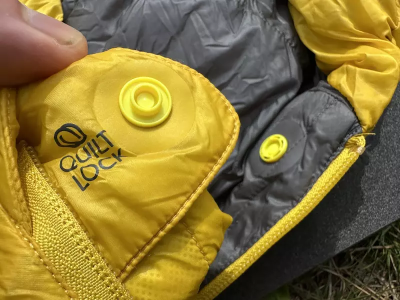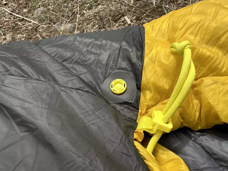 新しいスパークにはシートゥサミットのエンバーと呼ばれるダウンキルトをジョイントすることができるように首の部分にスナップボタンを配して止められるようにできています。寝ている時に以前はキルトがずれてしまって肩や首部分が寒かったのですがこのようなことがなくなりました。
