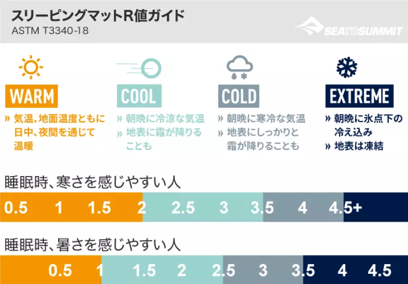 夏山ならR値2~3、春秋・高地はR値3~4、冬山や残雪期はR値4以上が目安です。