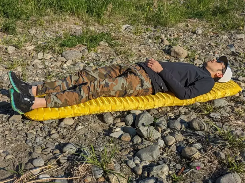 空気を注入することで厚みが生まれ、地面の凹凸や硬さをしっかり吸収します。体への負担や疲労を軽減し、翌日の登山のパフォーマンス向上にもつながります。