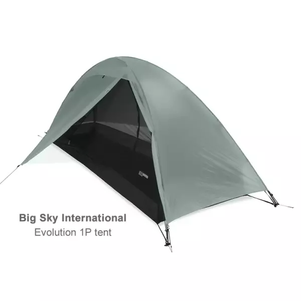 ダブルウォール構造で結露を防ぎ、ポールクリップにより設営が素早く簡単。1Pモデルは耐候性と居住性を兼ね備えつつ、約1kg台の軽量を実現。エボリューション1Pより堅牢性や通気性に優れ、ウィスプ1Pのようなハイブリッドダブルウォール超軽量モデルよりも居住性と防水性が高い点が特徴です。
