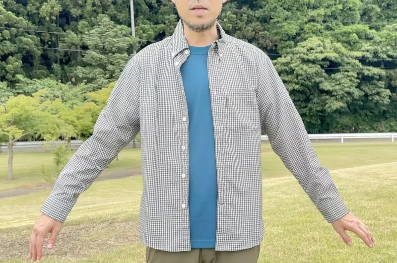 ミドルレイヤーにセレクトしたのはWIC.ドライタッチロングスリーブシャツです。このシャツは吸水拡散性に優れたウイックロンドライタッチを使用しており、汗をかいても素早く乾いて肌をドライに保つ特徴ある素材を使用しています。