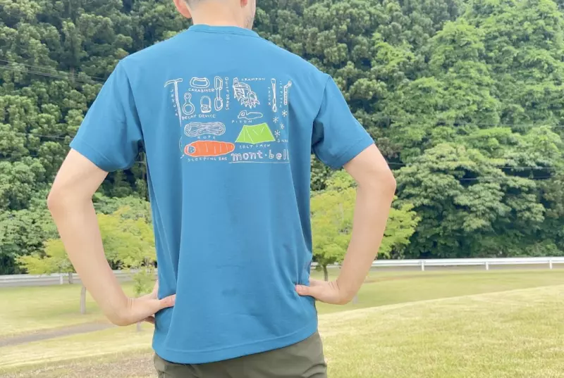 ベースレイヤーにはコットンのような優しい肌触りで普段使いにもおすすめの「WIC.T」をセレクトしました。このTシャツが採用している素材もウィクロンで、速乾性と通気性を備えた快適素材です。汗をかいた時の吸水拡散性は暑い季節の登山にとてもおすすめです。