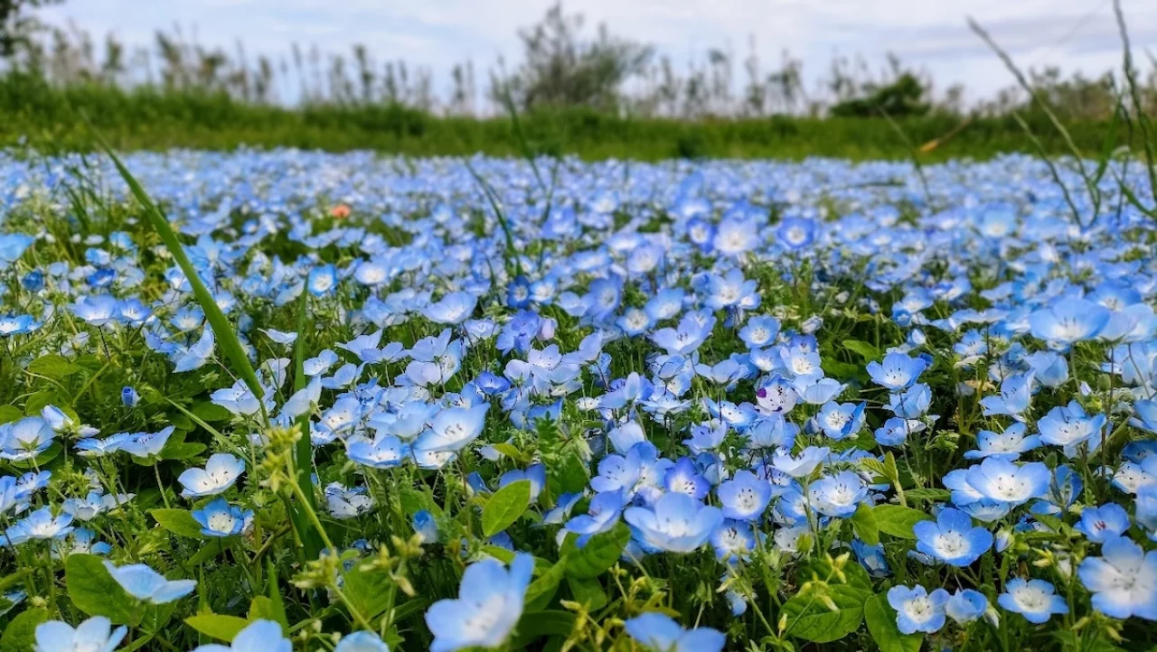 ネモフィラ畑があったので立ち止まりました。寄り道も気兼ねなくできます。