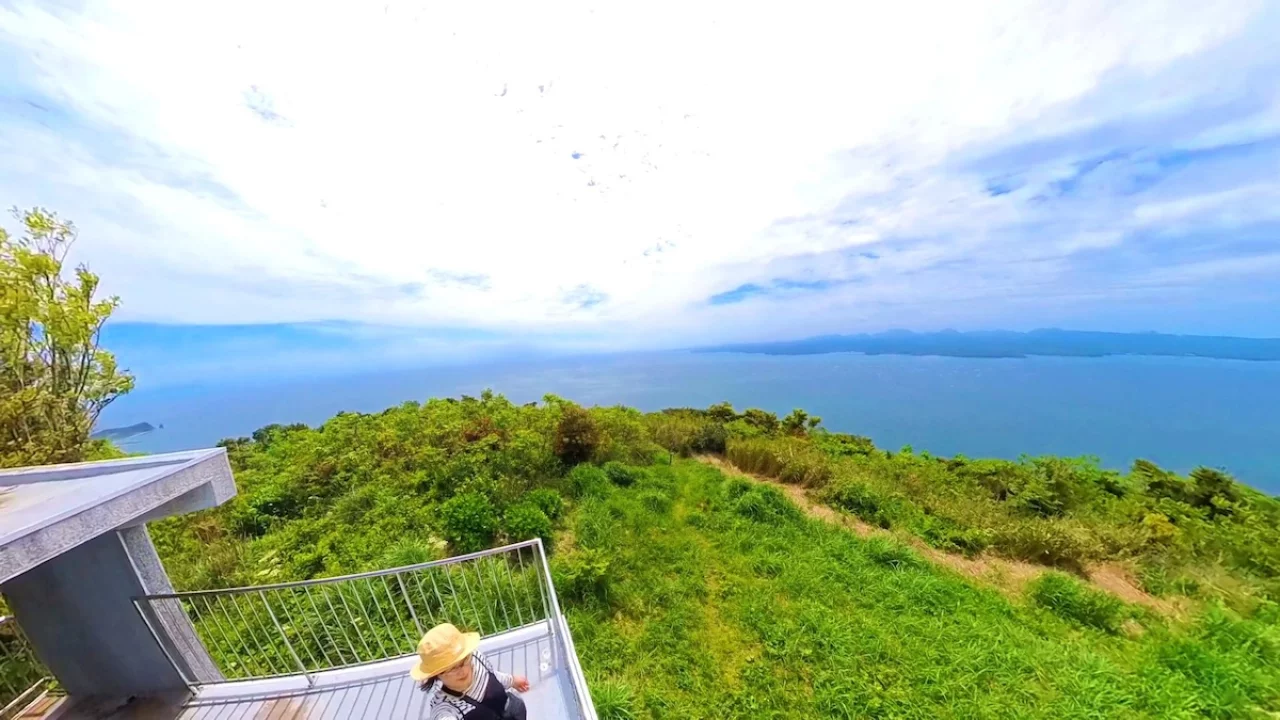 わぁ~山頂は広くて国東半島が見渡せる!