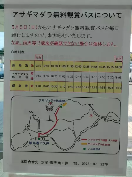 目的が「アサギマダラの乱舞」だったのでそこまで徒歩で行くつもりでしたが、フェリーターミナルでとあるポスターを発見!