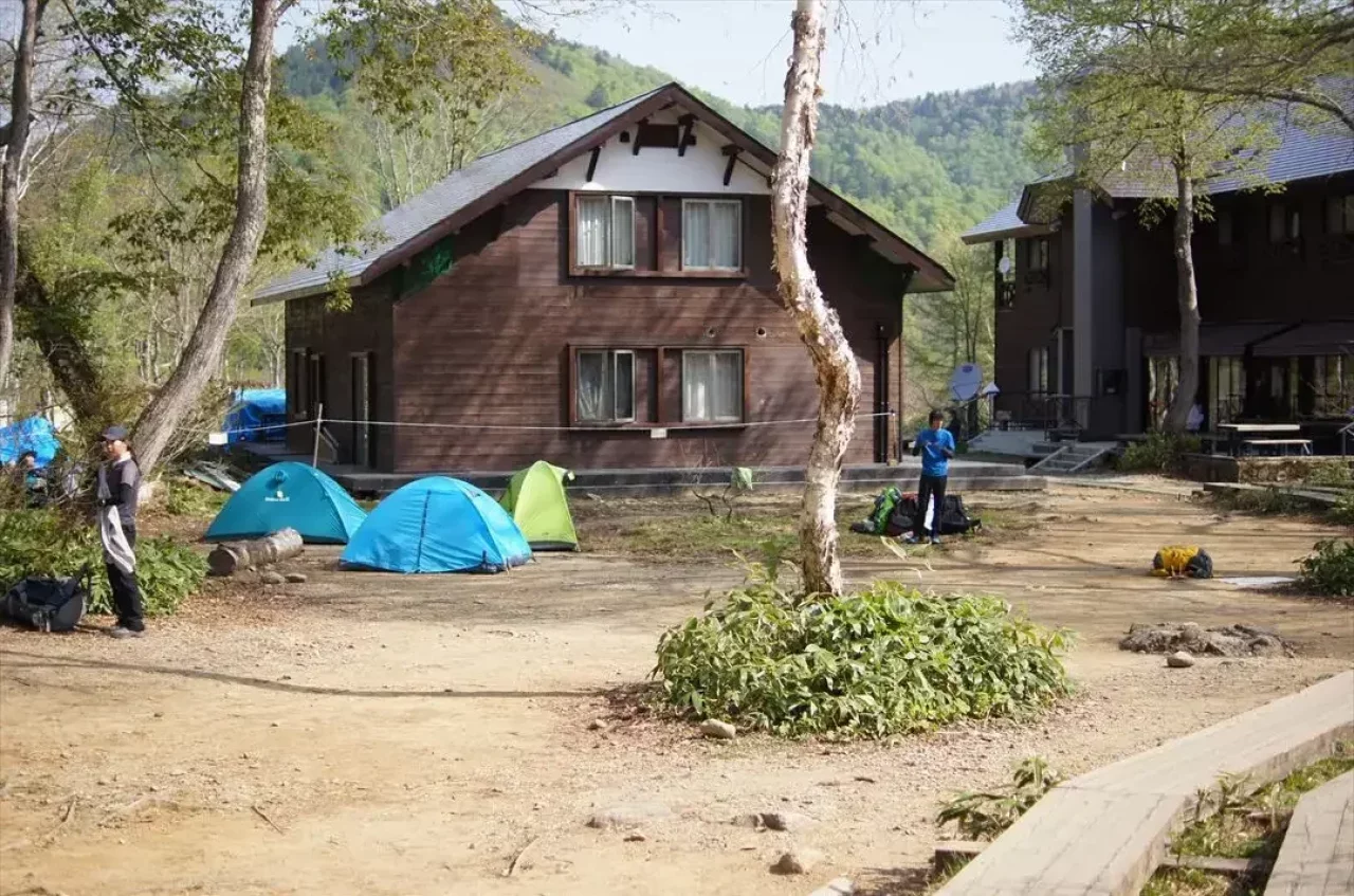 ②テント内に荷物を置いて登山できるベースキャンプ型または登山口型のテント場