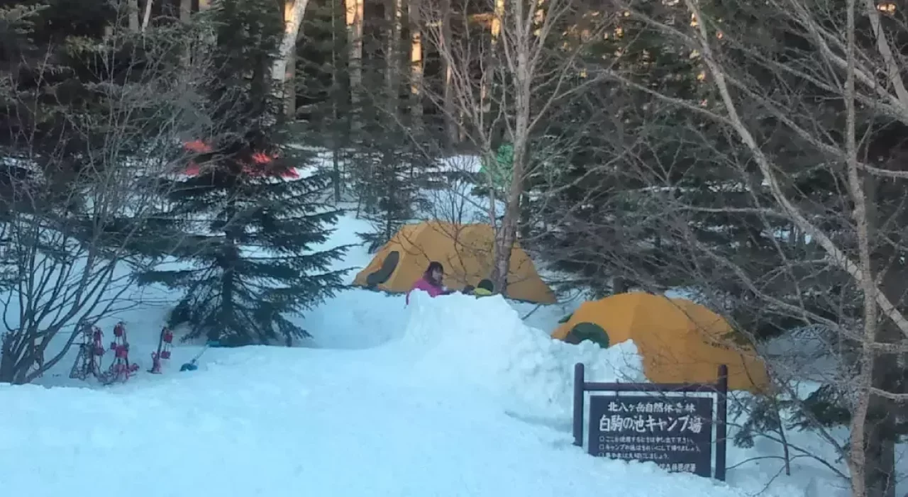 - 登山口からテント場まで徒歩50分、荷物を担いで歩く練習になる