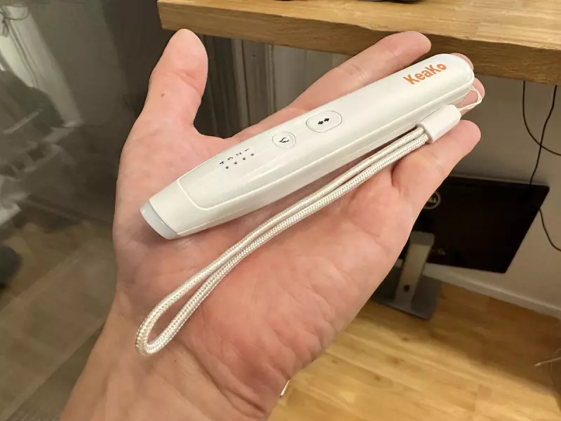 この痒み止めペン、どのように使用するかというと矢印がついているボタンを長押しして電源をオンにします。その後同じ矢印のボタンを押すとペンの先に表示され、1から4と強さの段階が変わります。1は最も弱く4が一番強いです。