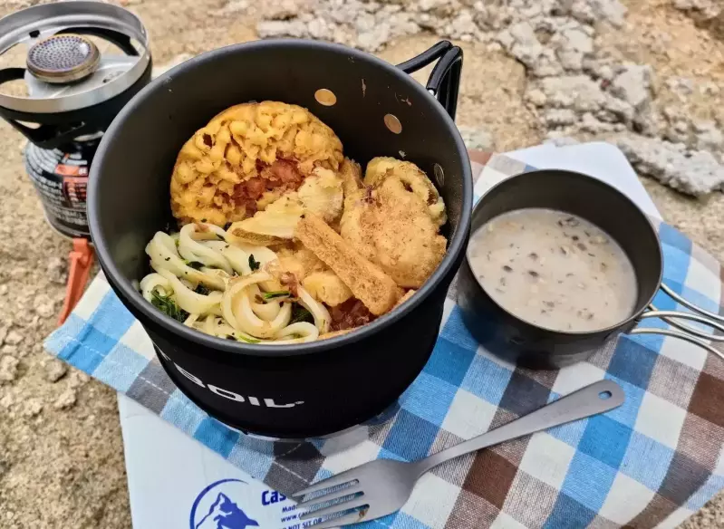 山での食事はテント泊登山最大の楽しみなので、日帰り登山で山ごはんを作った経験がある方は、テント泊ならではの凝ったメニューを立案してみるのもおすすめです。家で試作した後、実際に日帰り登山で作ってみましょう。
