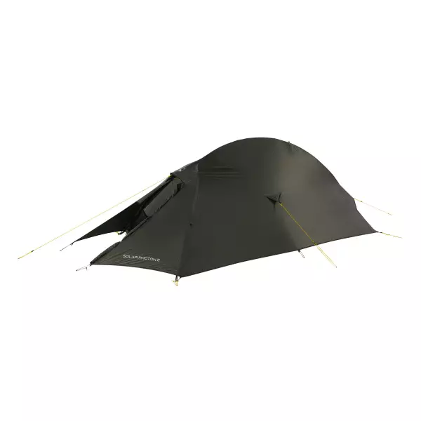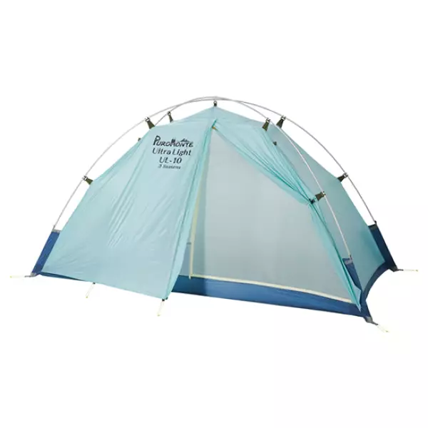 最小重量約850gの超軽量2人用ダブルウォールテント。10Dリップストップナイロンによる高強度・高耐水フライ(耐水圧2000mm)、優れた耐候性と設営の容易さを両立。広い室内とで快適性も魅力です。
