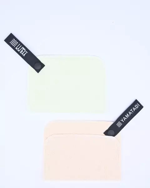 山旅サッパリタオルの使い方は非常にシンプルで、水に濡らして拭くだけです。購入すると最初は特殊なゴムの微粒子がコーティングされているので、少しパリッとした素材感です。これを濡らしてもみほぐしてあげると非常に柔らかくなります。