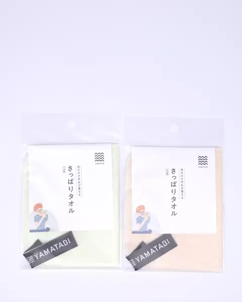 このタオルは汚れても洗えば繰り返し使うことができ、水だけで洗うので排水を汚しません。すすぎの必要もなくたくさんの水を使う必要もありません。