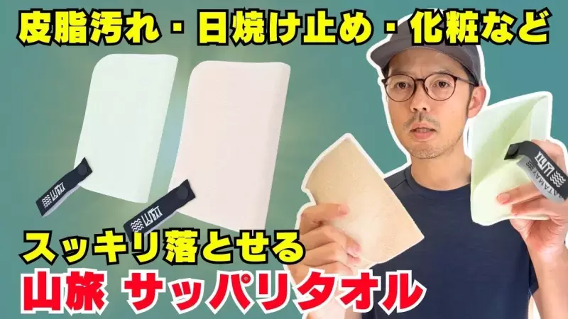 登山に出かけて体が汗でベタベタして気持ち悪く感じたことはありませんか?女性の方であれば、テント泊や小屋泊で就寝前に化粧や、日焼け止めなどをしっかり落としたいと感じる方も多いと思います。そこでおすすめしたいのが2024年にリリースしたばかりの山旅サッパリりタオルです。このタオルを使用すれば、汗のベタつき、化粧や日焼け止め落としも水だけで簡単に落とすことができます。