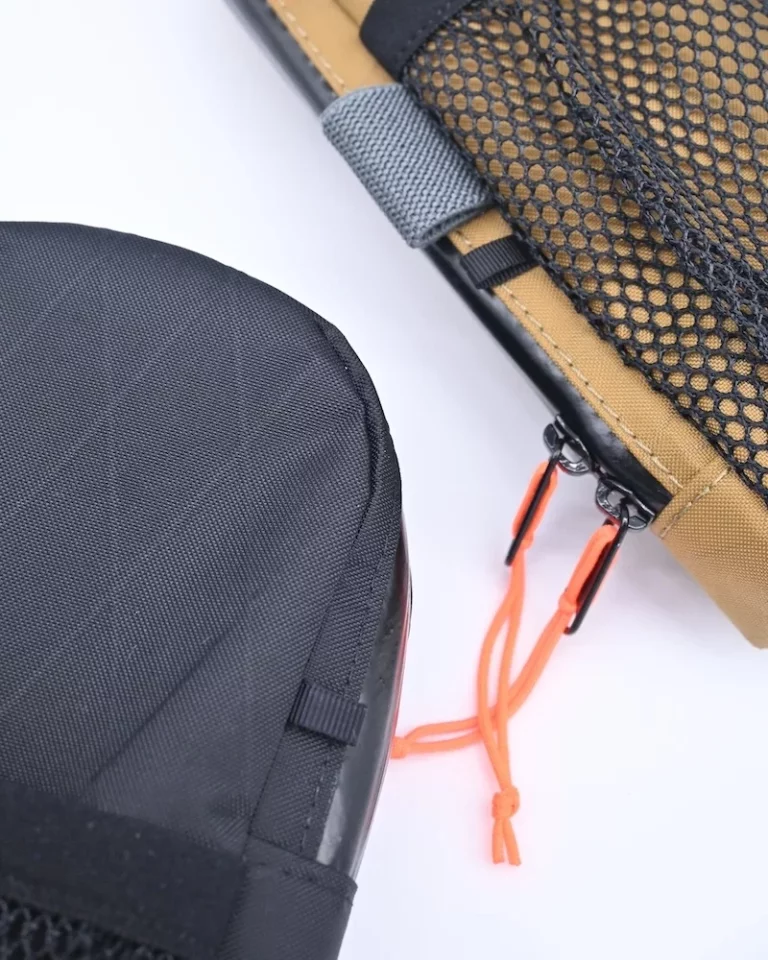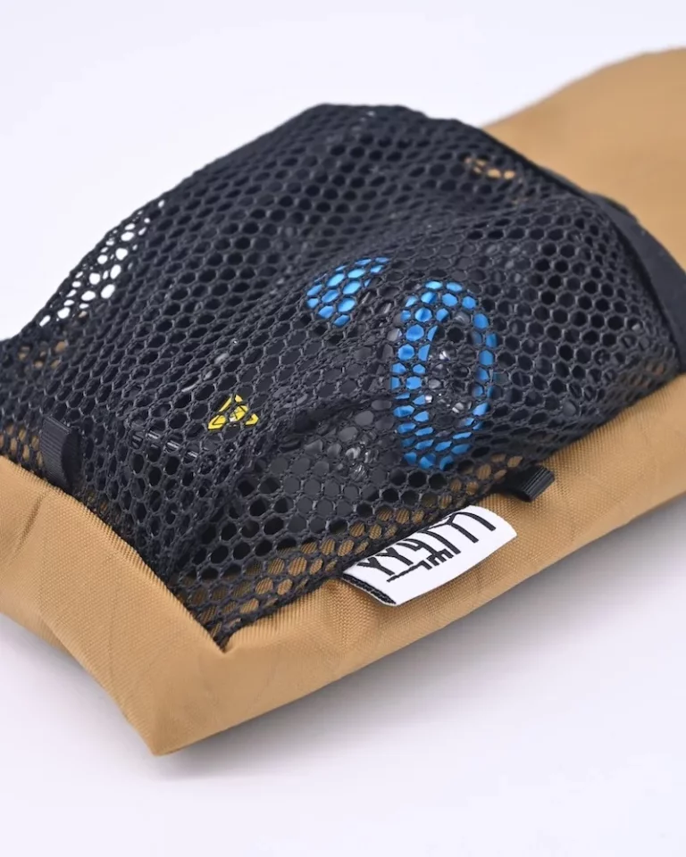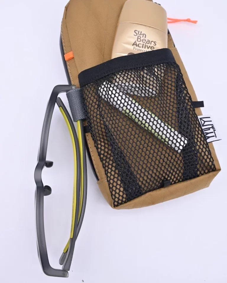 外側のメッシュポケットはマチ付きなので、中にスマートフォンを収納した状態でも日焼け止め、虫除けスプレー、リップクリームなどの小物を収納することもできるし、嵩張るヘッドライトを収納しておくこともできます。夜中に行動する時にはとても便利です。