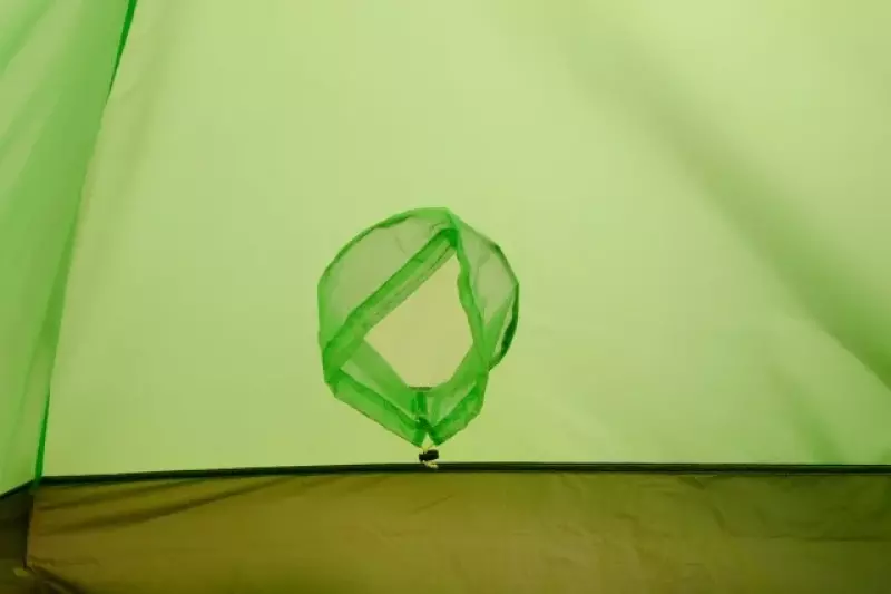 暴風雨時になるとテントに付いているベンチレーションがテント内に入り込み、コードを伝わって雨がテント内に入ってくることがあります。夜間の暴風雨が予想される場合は、あらかじめ予備のガイラインとペグでテントの外側に固定しておくことで内側に雨が流れ込むことを防止できます。