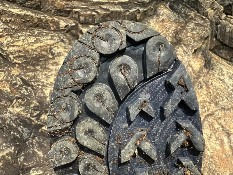 特徴的なのは4種類のラグパターンを組み合わせ、様々な登山道と、その登山道における足の置き方で安定した歩行を可能にしています。