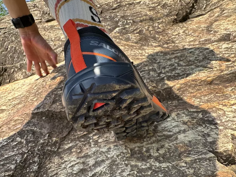 アウトソールにはサロモンのオリジナルソール「Contagrip®Alpine(コンタグリップアルパイン)」を採用しています。サロモンのソールの中では最も粘りがあり、様々な登山道でグリップ力を発揮するラバー素材が使われています。