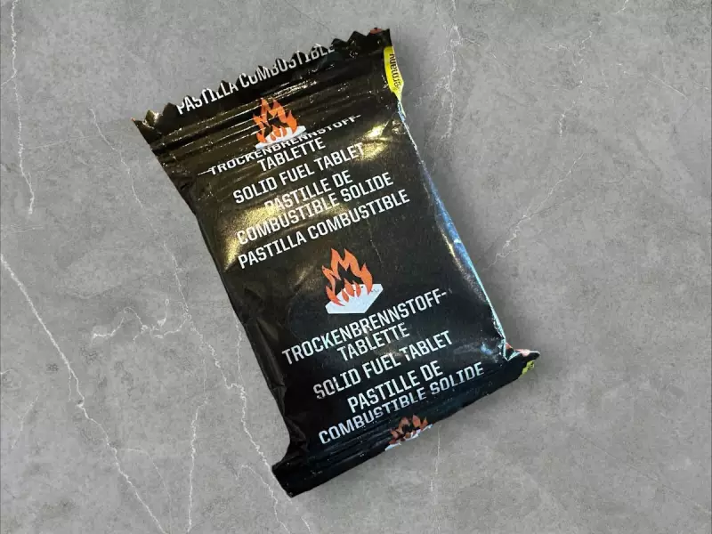 お湯を作るのに使う燃料は固形燃料です。100円均一で販売されている固形燃料やニチネンの固形燃料は煤が出ないのが利点ですが、火力が弱いのでお湯を沸かすまでに時間がかかります。僕が使用している固形燃料はエスビットのミリタリーで1タブレットづつブリスターパックされているので乾燥した状態で保管ができます。夜1つ、朝1つ使用と考えて2箱必要になりますが、もしもの時に追加で2箱予備を持っておくと安心です。