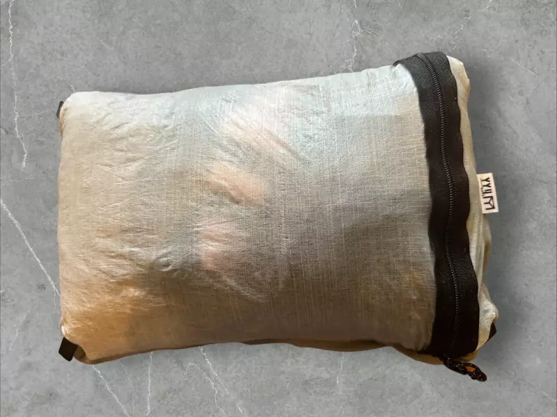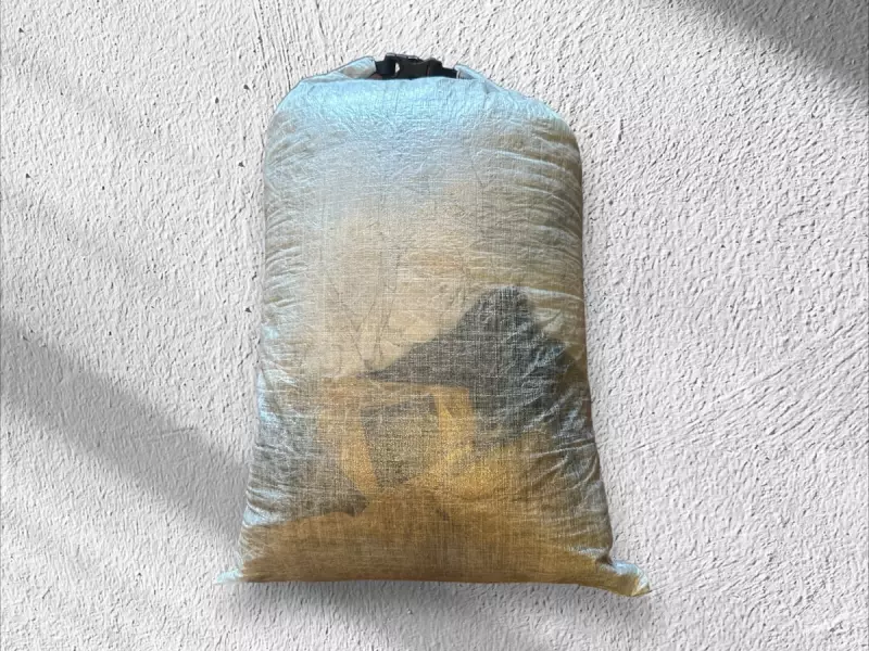 リバーシブルピローは商品名にもあるように裏返すとそして使用できる優れものです。素材はダイニーマなので、雨や汗に中のものが濡れづらく、また枕として使用する時には着用していたフェア類をこのスタッフバッグの中に入れるのですが、通気、透湿しないダイニーマなので、匂いも気になりません。