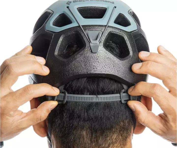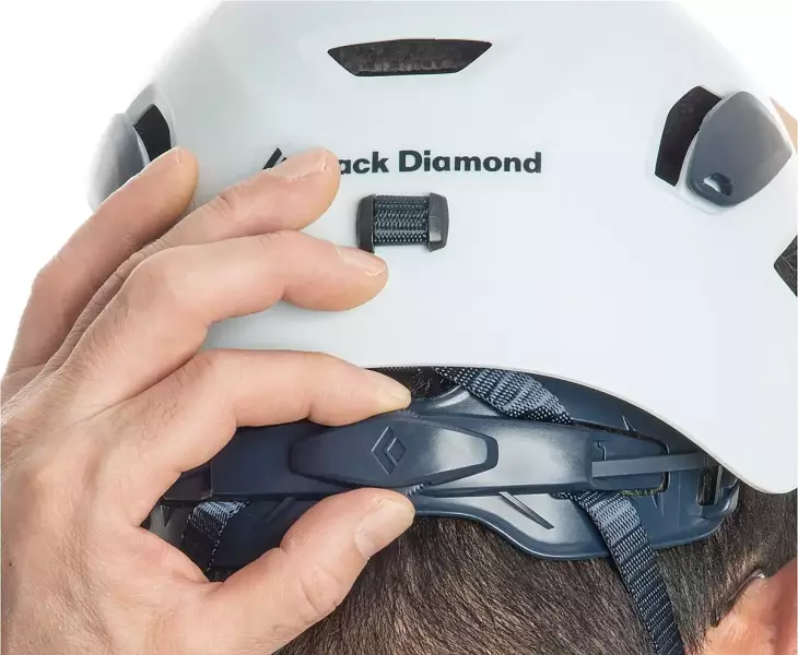ハーフドームの内側には、調整可能なサスペンションシステムが搭載されており、頭部にしっかりとフィットさせることができます。ダイヤルによる調整は片手で行うことができ、クライミング中にも簡単に調整することが可能です。