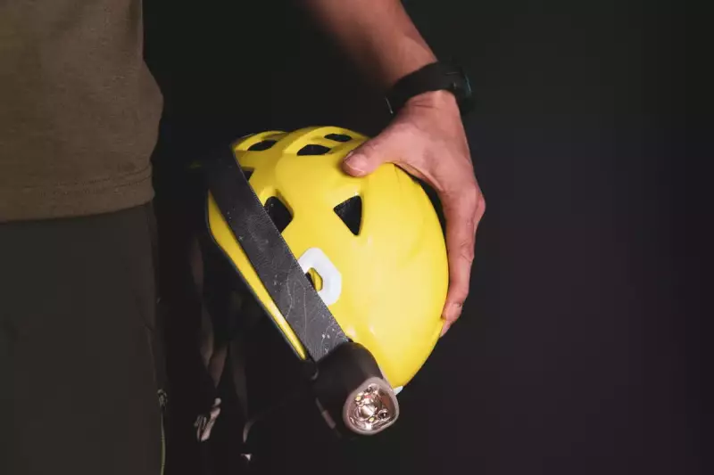 ⑤ヘルメットの上からヘッドランプの装着がしやすいかを確認