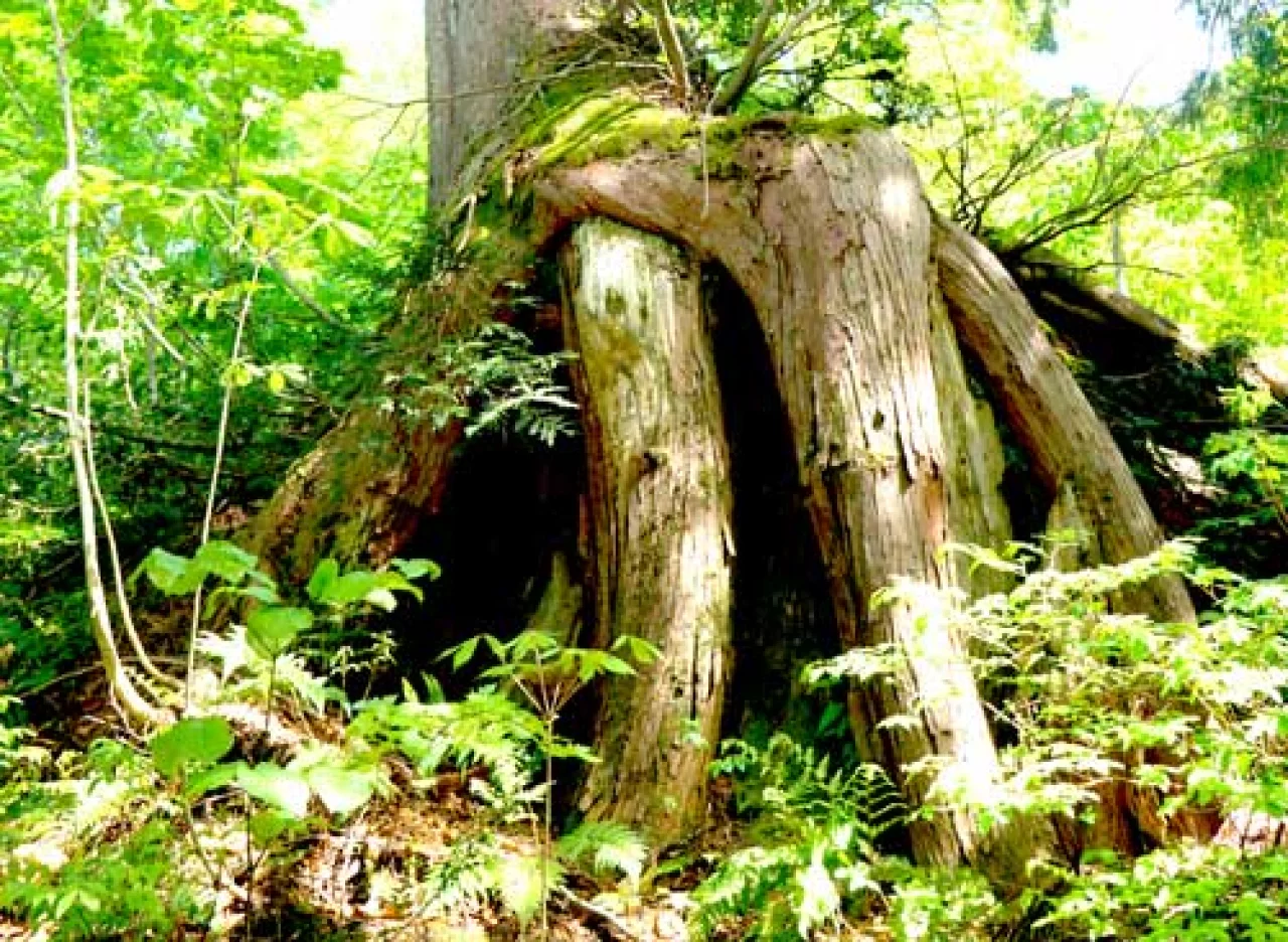 登山口から1Km進むとネズコの巨木が迎えてくれます。