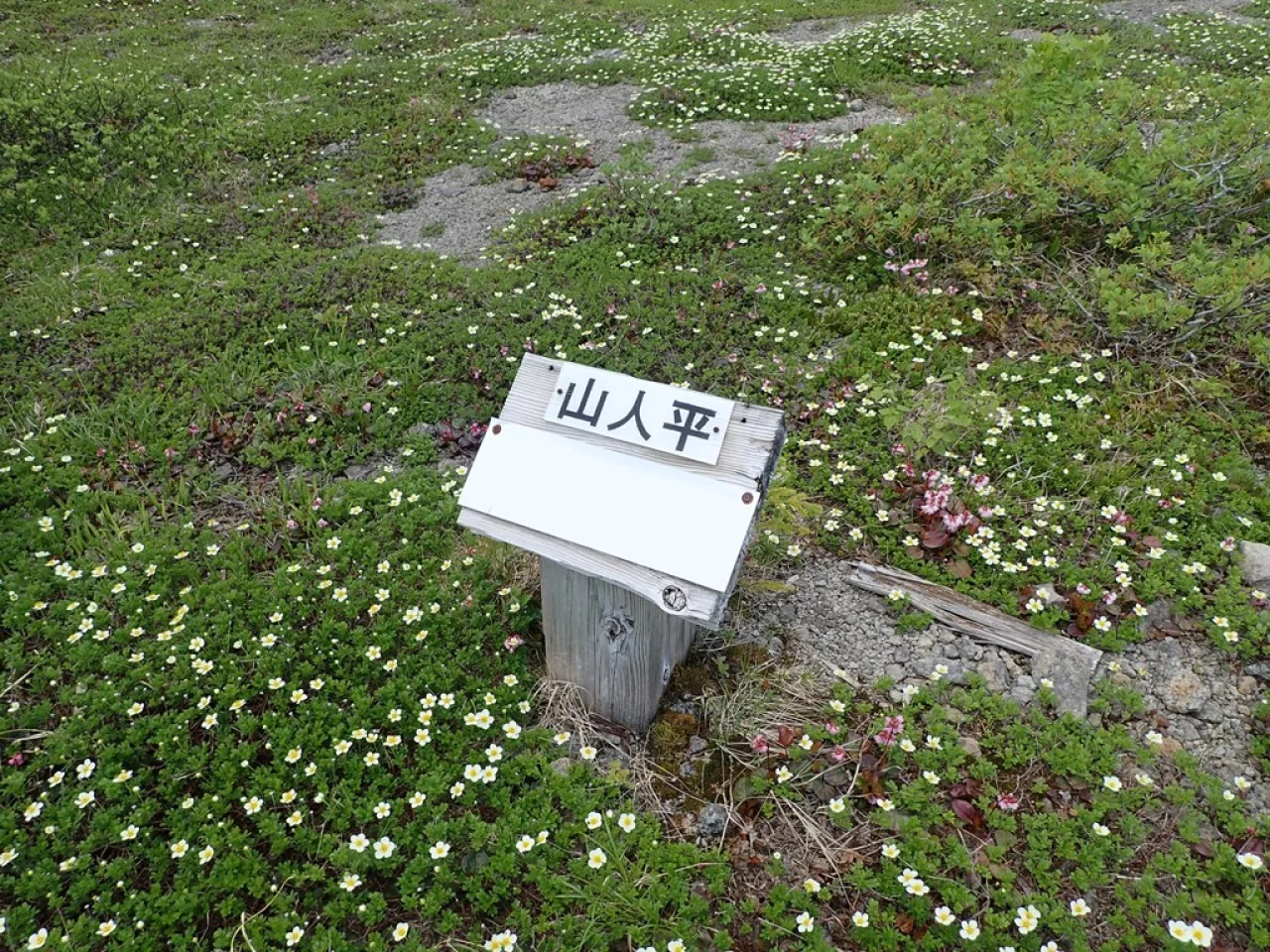 アオモリトドマツ林を抜ければ山人平(1,324m)。チングルマやイワカガミの見頃は6月中旬から下旬にかけてがベスト。