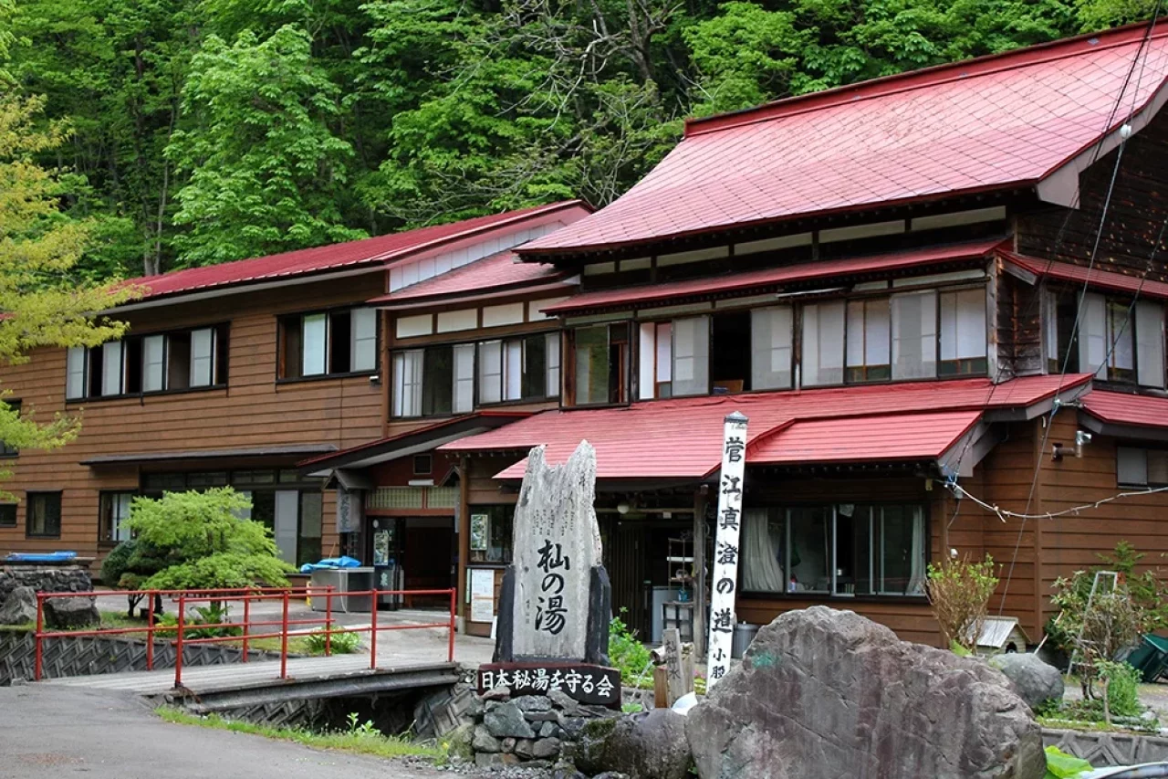 森吉山の山すそを流れる小又川の上流、うっそうとした原生林、野鳥のさえずる深山にひそむ秘境の温泉。主人はマタギでもあり、冬はキジや熊の別注鍋料理もある。
