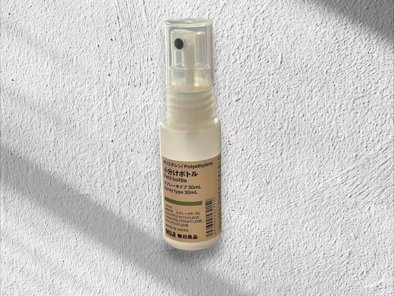 無印良品には実に様々な小分けボトルやケースが販売されており使い心地に優れています。僕は虫除けスプレーを自作して持ち歩いているので、使いやすいスプレーというのは非常に重要です。