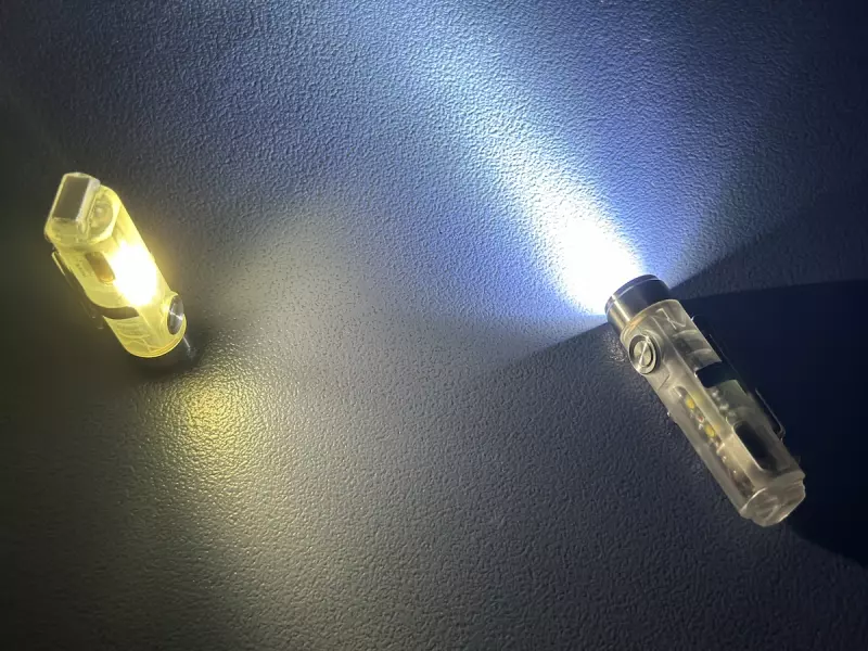 明かりを消した時は強い蓄光で暗がりでもライトがどこにあるかわかりやすく便利です。AuroraA5、AuroraA7はこの蓄光の色が異なるだけで、スペックは同等です。AuroraA5が緑、AuroraA7が青です。