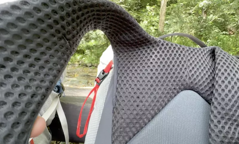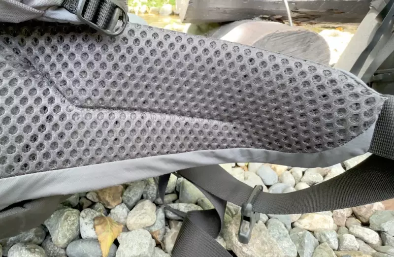 ショルダーハーネスとウエストベルトには通気性と汗の乾きに優れたハニカム構造のパットが採用されています。クッション性に優れているだけでなくザックを背負っていて暑く感じることなく快適に行動することができます。