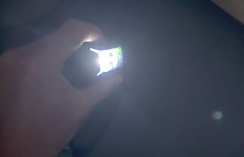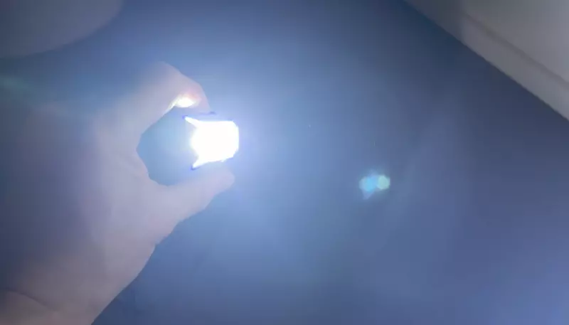 本体上部のボタンを押すと明かりが点灯します。この時ライト本体の右上が緑の場合は51%以上充電が残っているという状態です。