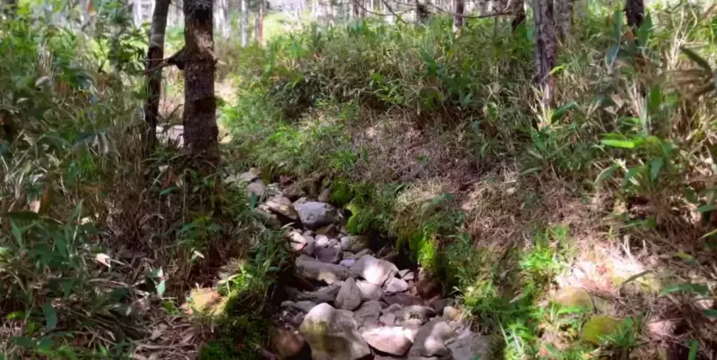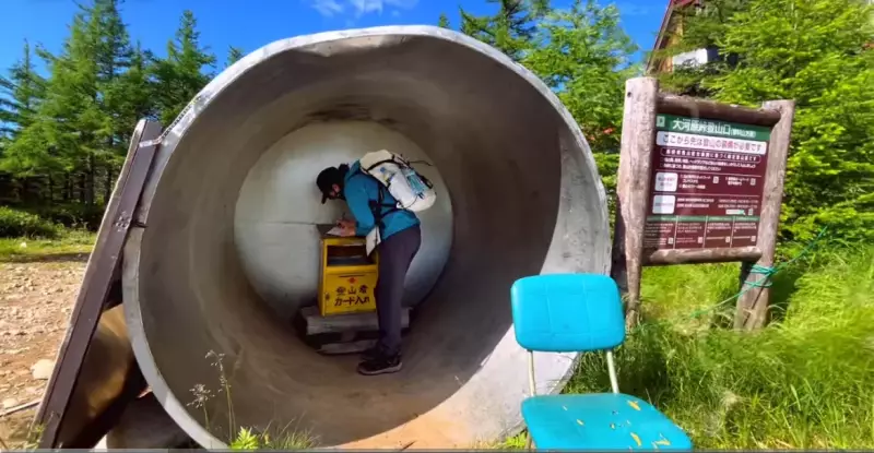大河原峠の駐車場から登山口に向かって歩くと、人が入れる大きさの土管が!