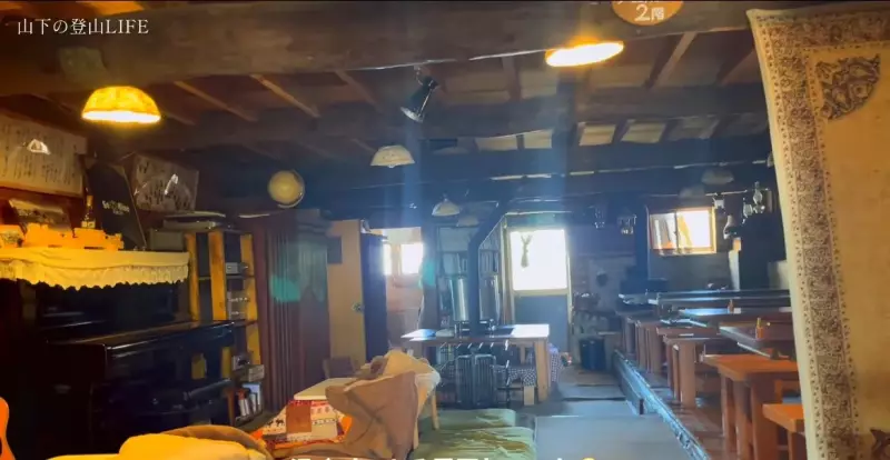 山小屋中にはピアノやギターが置いてあり、暖かい雰囲気です。