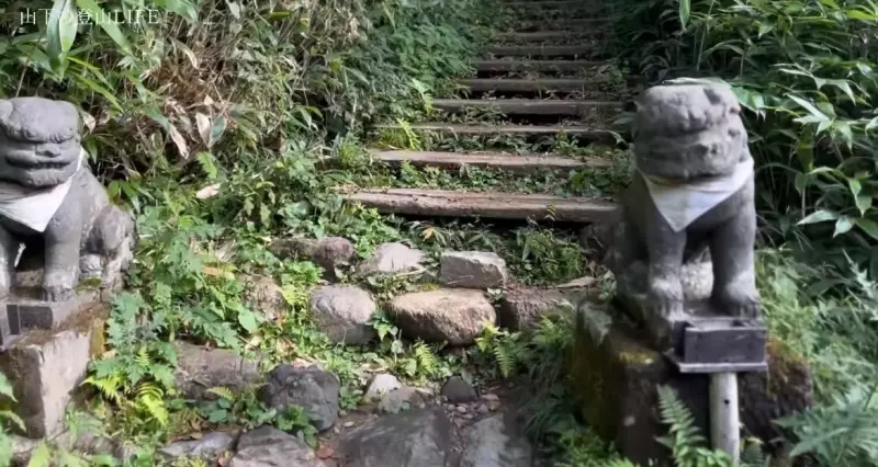 スタート地点には山之神と書かれた鳥居があり、歩みを進めると狛犬も鎮座しています。